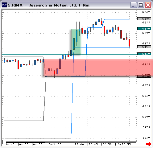 CQGのコンディションマクロを利用し、ガイドラインを表示する機能と、ブレイクアウトを検出する