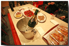 マーケット開始前の恒例となっているワインブレイクでは、旨いシャンパンでカンパイのあと、ハイテンションな雑談モードへ突入。(笑)