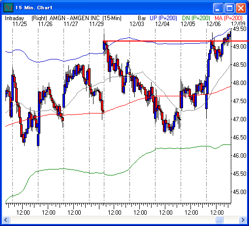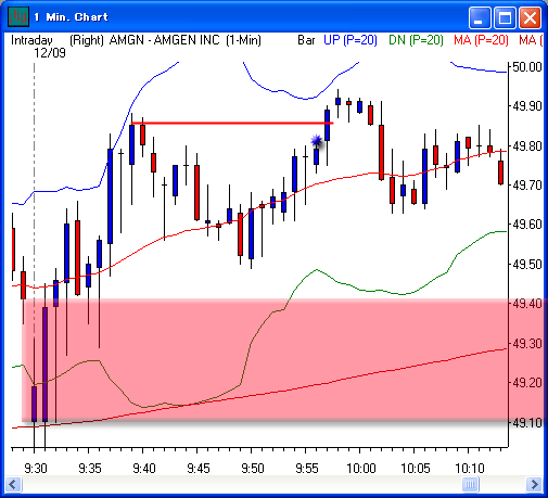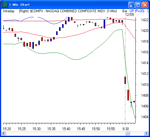AMGNだけを見ていれば、入れそうですが、上のチャートのナスダック総合指数を見ると 9:33 はまだダウントレンド。