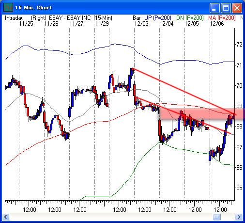 先生の選択されたEBAYについては確かにMAにはさまれてロングサイドのチャンスが多いような気がしますが、15MINチャートの長めに見るとトレンドが分かりづらいように見えるのですがどうなのでしょう?