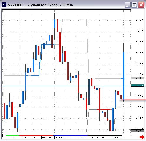 CQGのコンディションマクロを利用し、ガイドラインを表示する機能と、ブレイクアウトを検出する