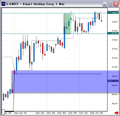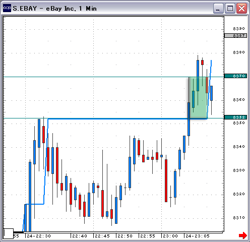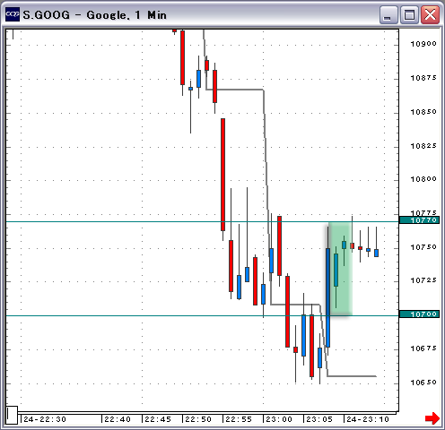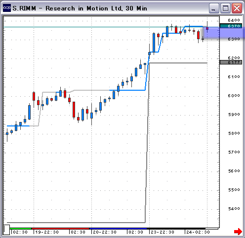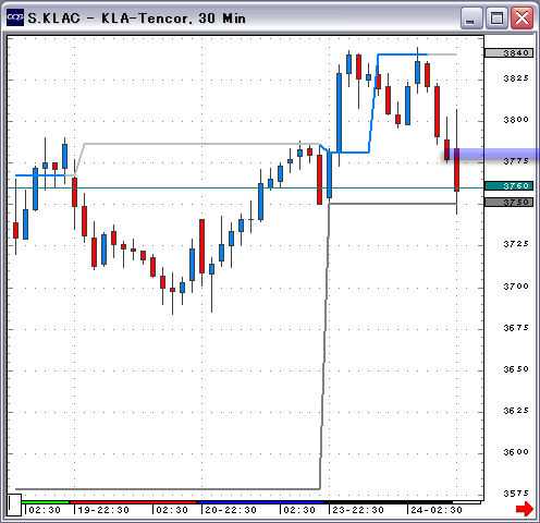 CQGのコンディションマクロを利用し、ガイドラインを表示する機能と、ブレイクアウトを検出する