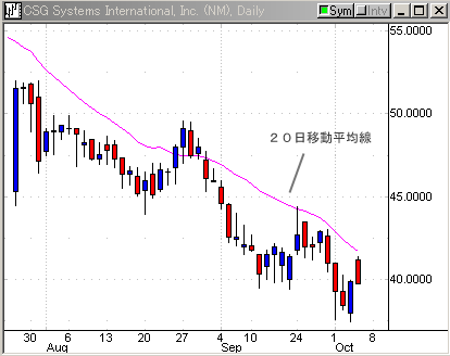 きのうに引き続き、20日移動平均線に挑んでいたが、体力尽きたといった様相だ。