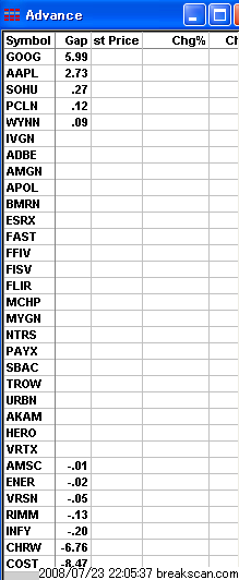 まず 当然ギャップアップしたものがあげてますが