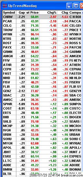 今日のアップトレンド、ダウントレンドのリストです