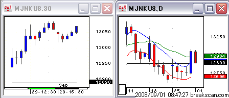 日経平均指数の日足チャートはレジスタンスを突破して終わりましたが・・