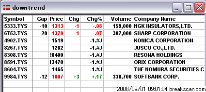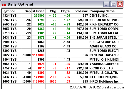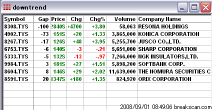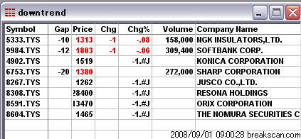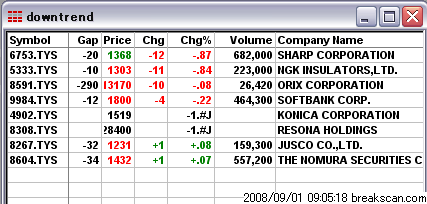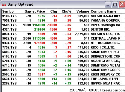 今日のアップトレンド、ダウントレンドの銘柄リスト