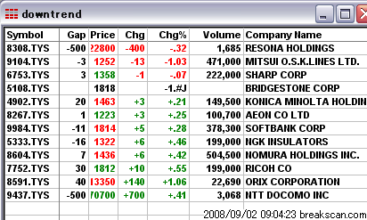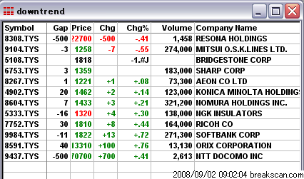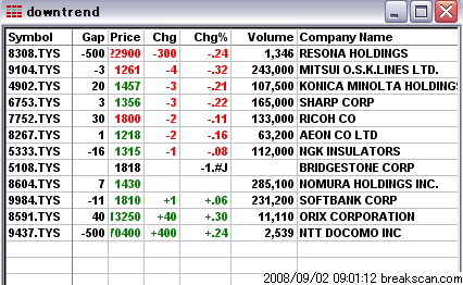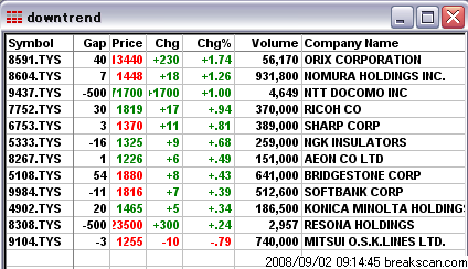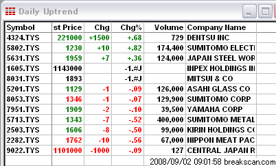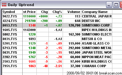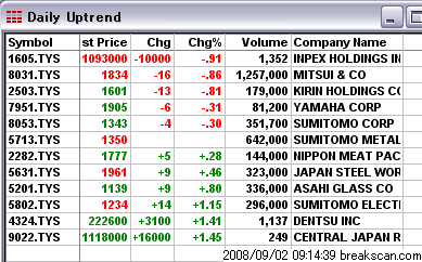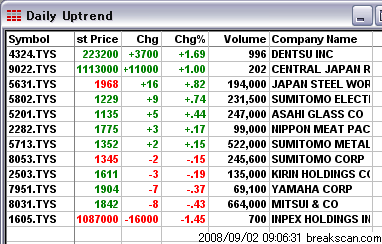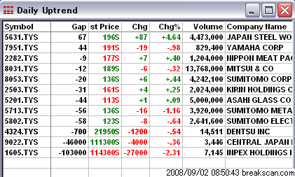 今日はギャップアップなのでまず狙うのはアップトレンド銘柄