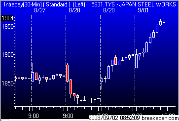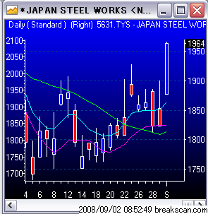 昨日の日本製鋼所(5631)はよく上がりましたがさて今日はどういう展開になるか?