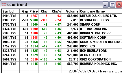 商船三井(9104)はよく下げました。9時2分に下げていると書き込みましたけどね^^
