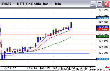 1分チャートや3分チャートを見る限りしっかりとした幅のギャップアップですね