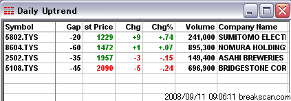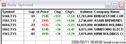今日のアップトレンド銘柄、ダウントレンド銘柄