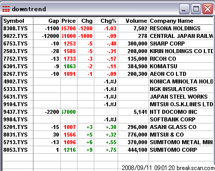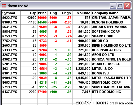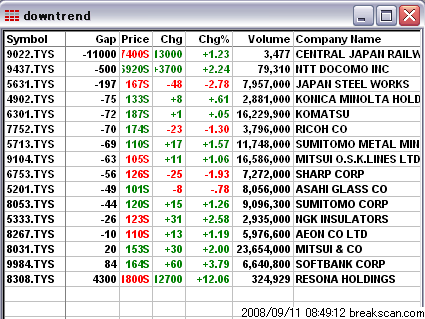 あいかわらずギャップダウン幅は大きい