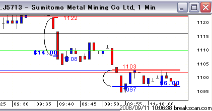 先物が今日の始まり値をブレイクダウンするか?