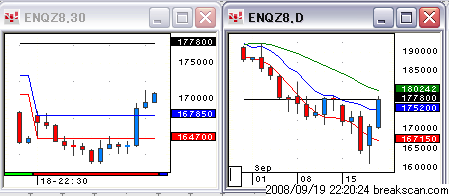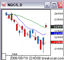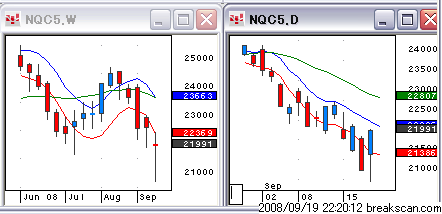 ナスダック総合指数の日足チャートはリーマンが倒産した日のオープニングまで戻した。