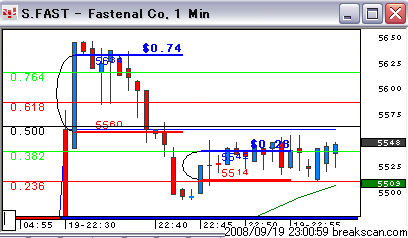 今日のはっち3号銘柄はフィボナッチのところがサポートになっているので