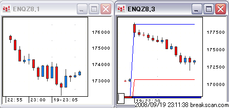 3分足チャートの抵抗線を監視するツールなのでわれわれは1分足でやっています