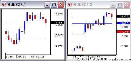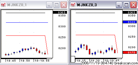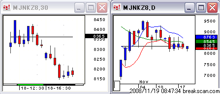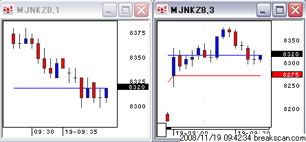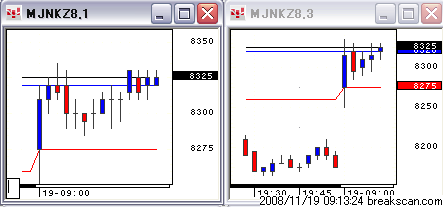 気配値による日足チャートで20MAの上に来そうな銘柄はアップトレンド銘柄リストへ移動させました