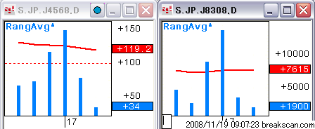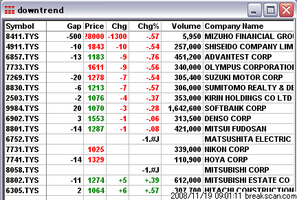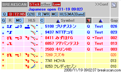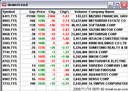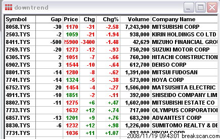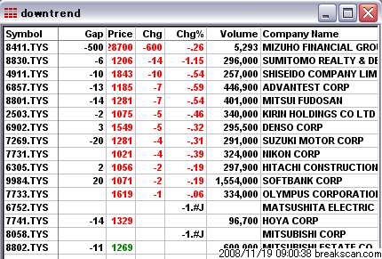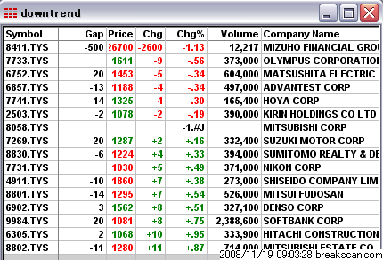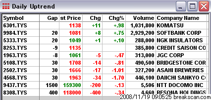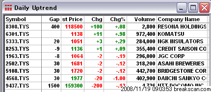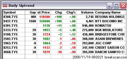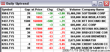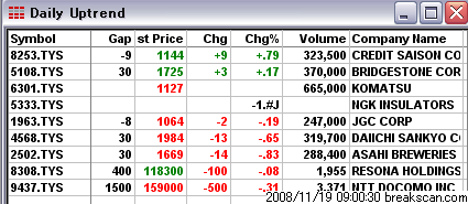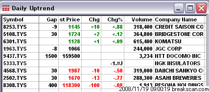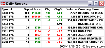 今日のアップトレンドリストへはダウントレンドリストからいくつか移動させました