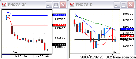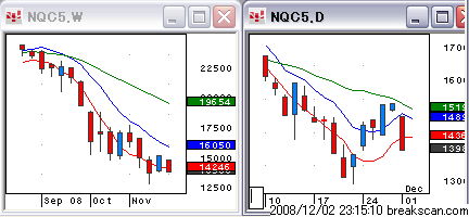 ナスダック総合指数の日足チャートは昨日大きく下げましたが・・