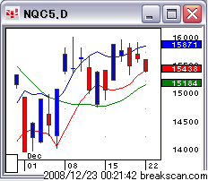 ナスダック総合指数の日足チャートは2連敗のあと