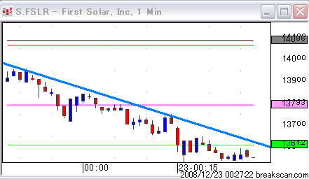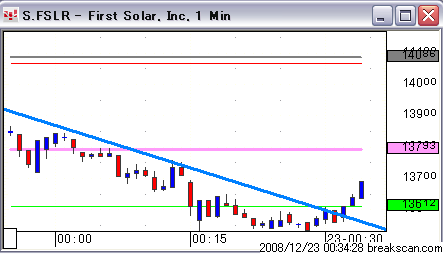 FSLR トレンドラインぬけてきた