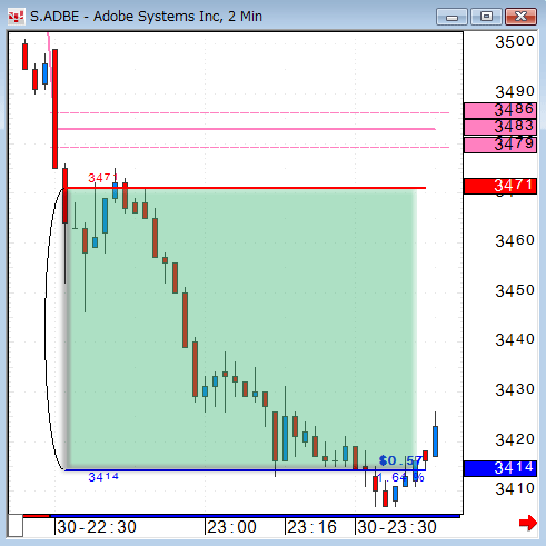 30(金)の米国ナスダックマーケットは、ほとんどギャップなしに近い薄いギャップダウンで開始。 開始から1時間は軟調で、その後買い戻しのプルバックを挟みながら下げ続け、最後は安値引け。ナスダック総合指数の日足は最近見られない長さの陰線で終了。ダウ指数の日足も超長い陰線。どちらも日足チャートは20日移動平均線から一気に陥落した位置。