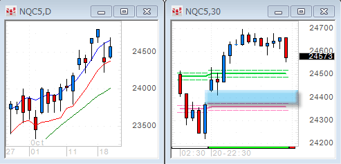 25(月)の米国ナスダックマーケットはギャップアップで開始。ナスダック総合指数の日足チャートは長い上ヒゲをつけたDOJIで終了。ダウ指数の日足は長い上ヒゲをつけた短い陽線で約半年ぶりの高値。株価は1万1100ドル台。ニューヨーク証券取引所(NYSE)の売買高は速報値で約10億1千万株、ナスダック市場は約17億株。