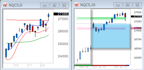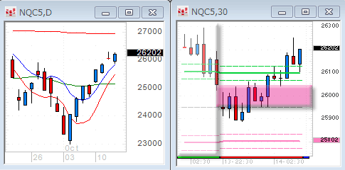 ダウ平均の終値は1万1900ドル台へ下落、ダウ・ナスダックともに日足はハイバンドの中へ潜った位置。