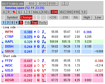 ショートサイド銘柄のパフォーマンスは +1200ドル