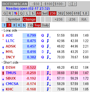 ボトムスキャン ・ マーケット開始2分後の表示
