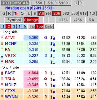 ロングサイド・クイックマジックで5銘柄 +460ドル