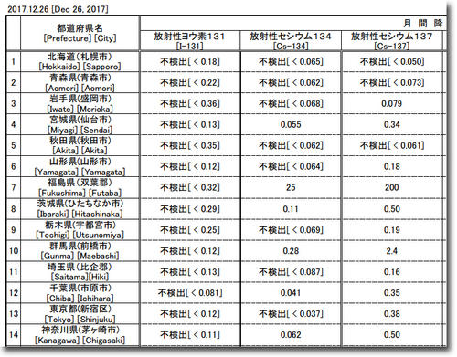 2017年12月26日測定・都道府県別環境放射能水準調査結果