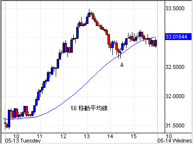 Aの地点には50移動平均線が走り、それが支えになった、と見る