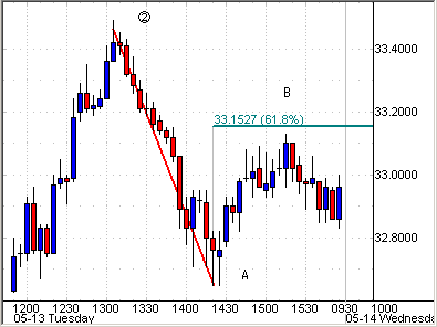 ポイントBもフィボナッチで説明できる。今度は61.8%が壁になり、失速