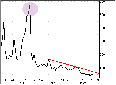 比べてみると面白い。3月に安値更新銘柄数がピークをつけている