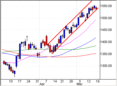 SP500の週足だが、ここからの積極的な買いは要注意だ。