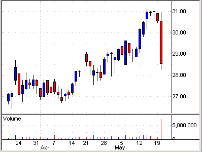 極端に長い陰線、それに通常の8倍近い出来高は、投資者達の