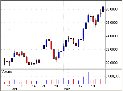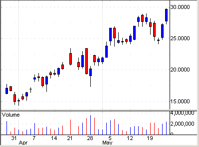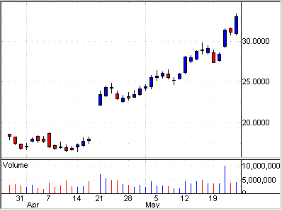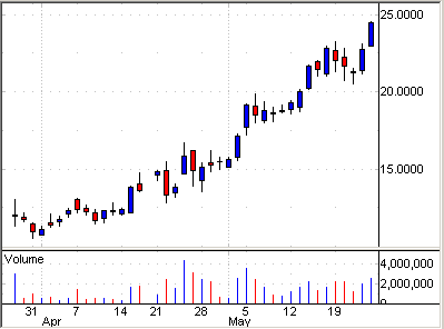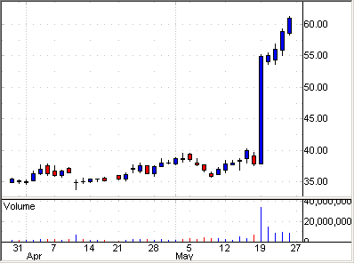 下のチャートは、今週デイトレーダーに人気のあった5銘柄だ。