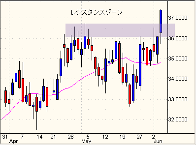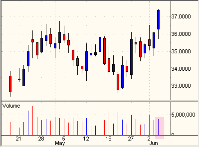 陽線の高値引けだが、出来高が気に食わない。昨日の量を上回っ