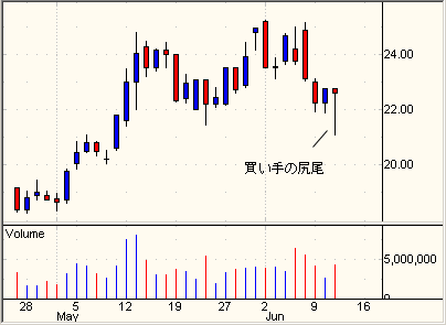 しかし、興味深いのは、買い手の力を示す尻尾ができて、ほぼ