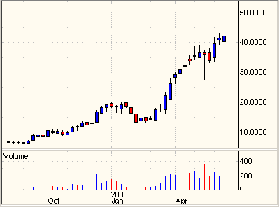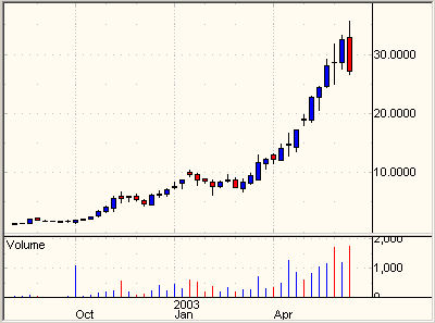 下は掲示板でも触れたSOHUの週足だが、膨大な出来高を伴なって